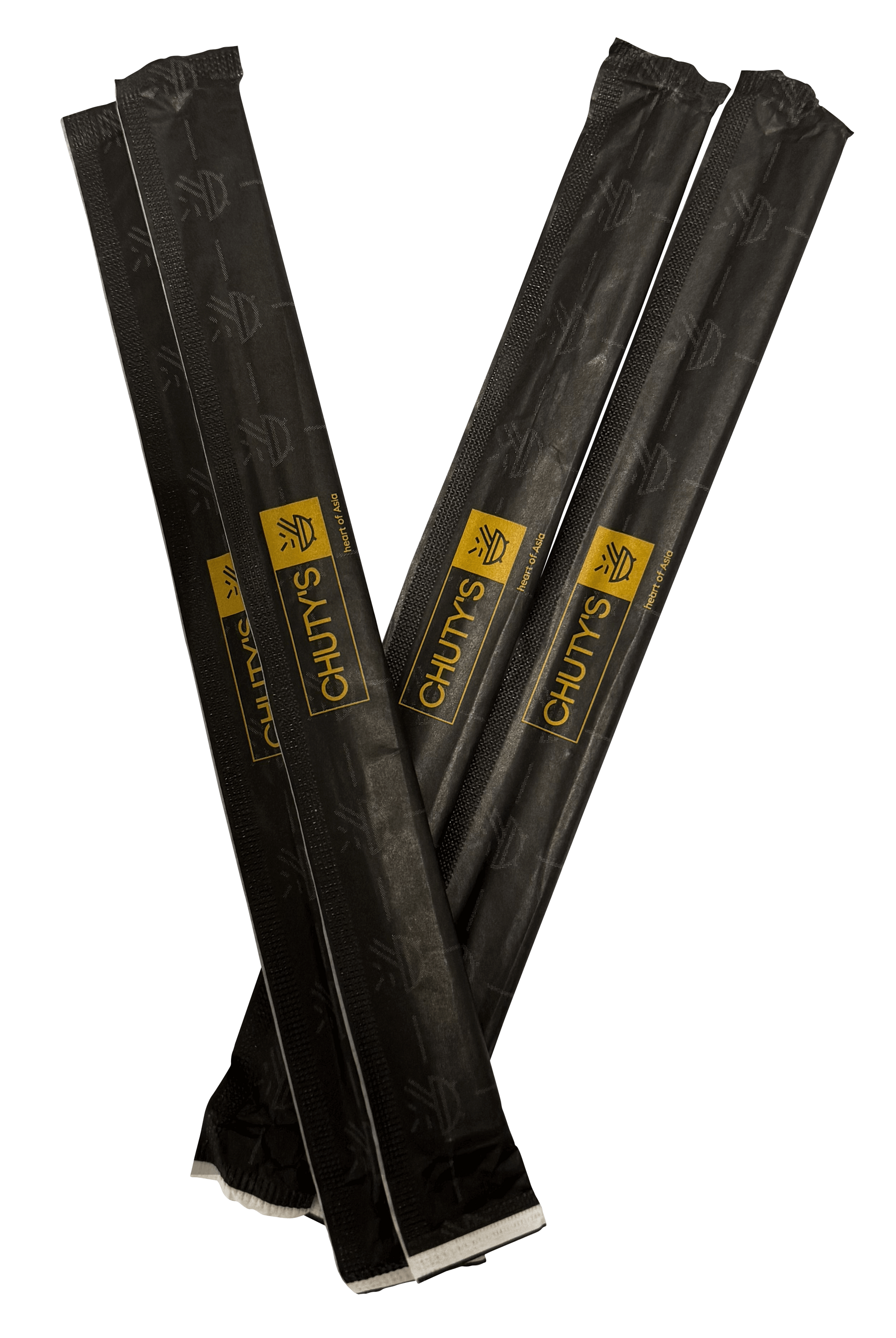 4x set za enkratno uporabo zapakiranih kitajskih/japonskih palčk znamke CHUTY’S. Elegantna črna embalaža daje premium videz.