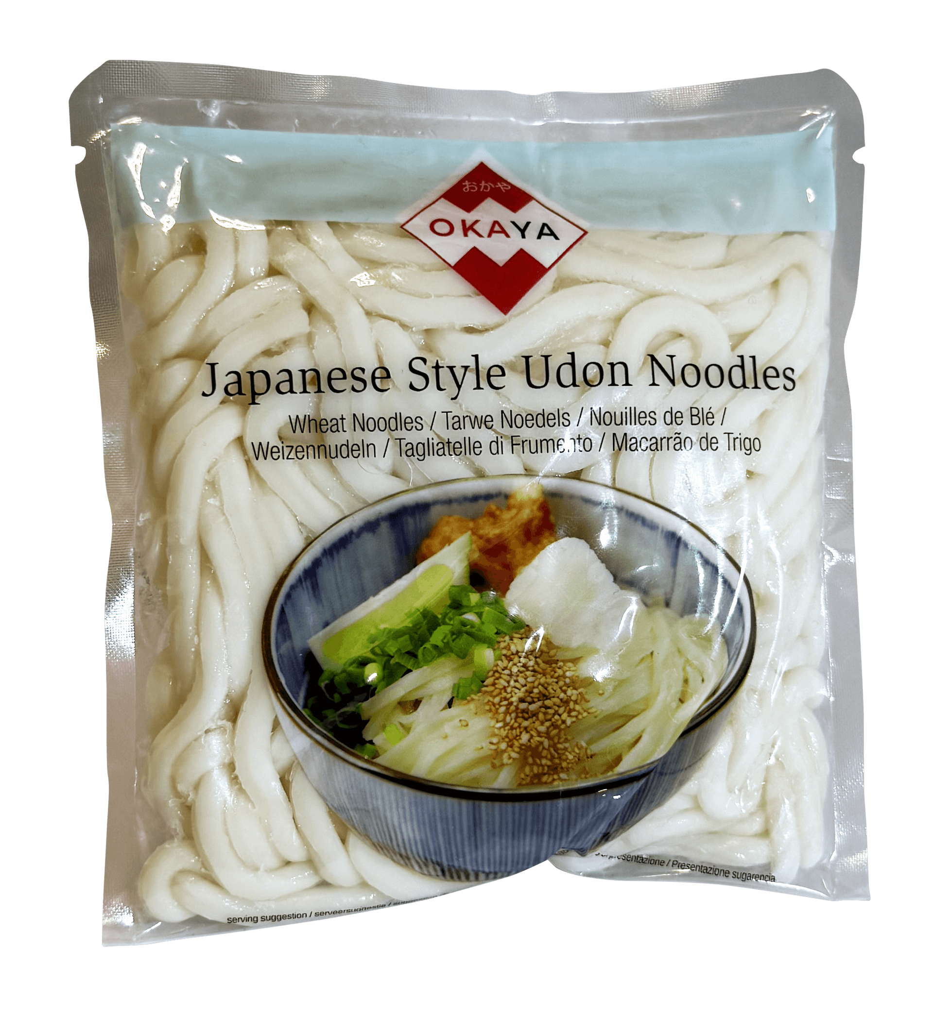 Sveži japonski udon rezanci iz pšenične moke, pakirane za hitro pripravo. Namenjeni so juham, stir-fry jedem ali kot priloga.
